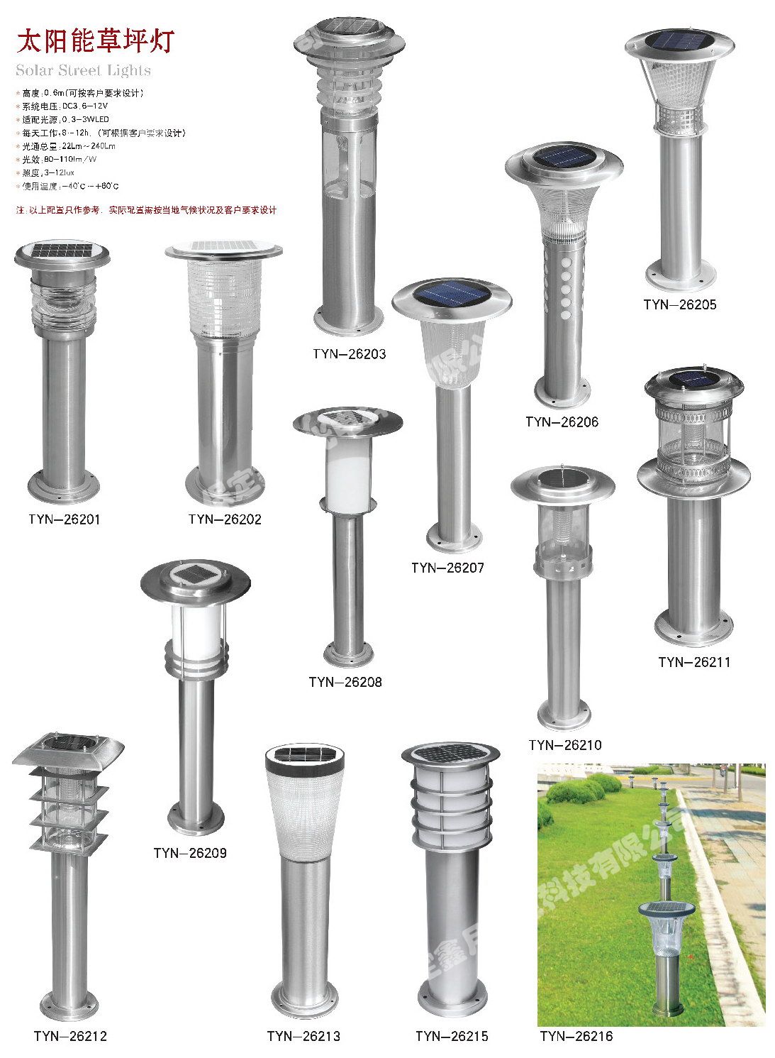 鑫月光電太陽能草坪燈圖集,為您介紹我公司太陽能草坪燈產品畫冊